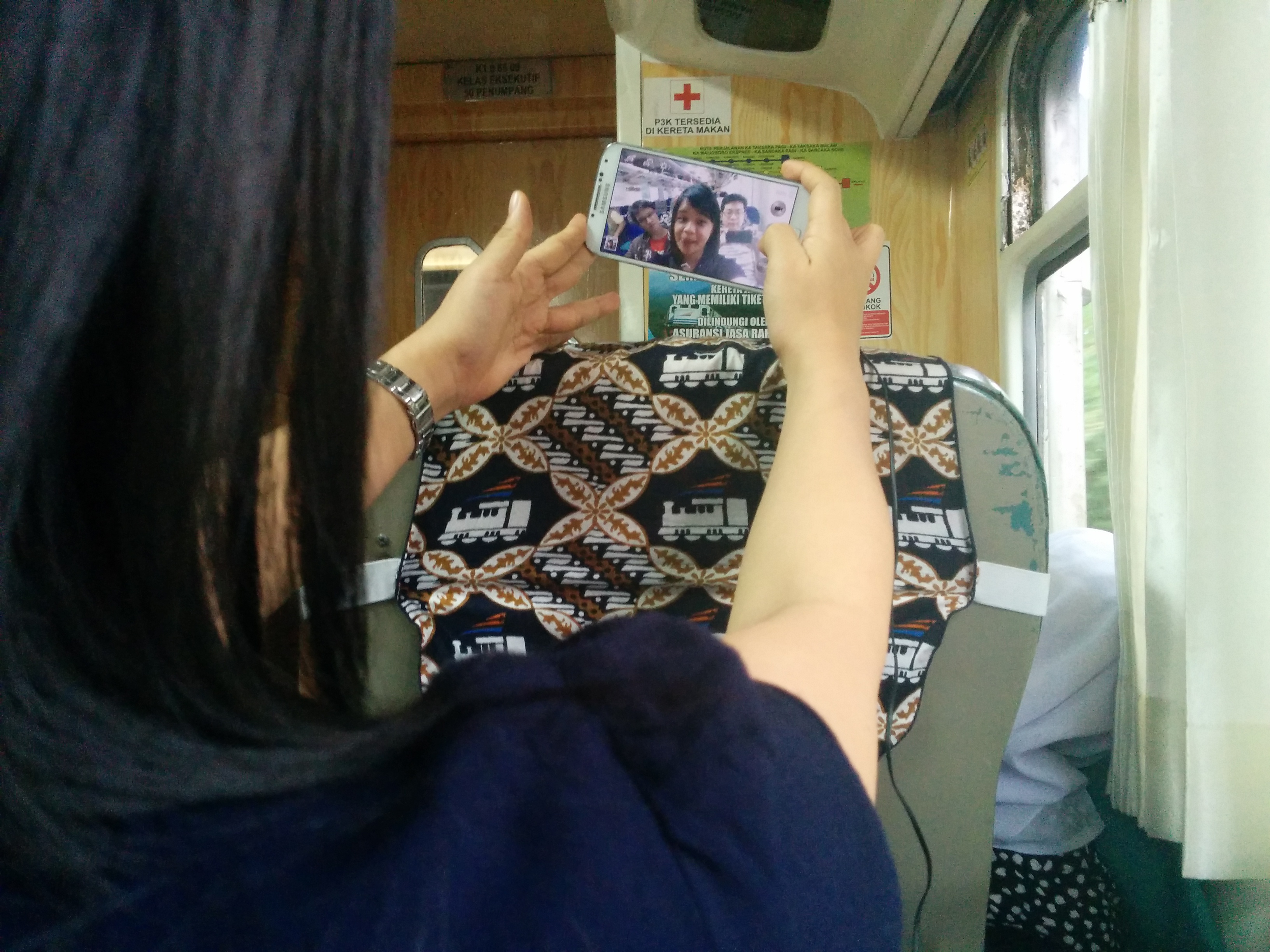Di masing-masing tempat duduk kereta terdapat 2 buah colokan beserta meja kecil, ada tv yang memutarkan film Home Alone 2 diselingi pengumuman dan iklan dari PT. KAI. Selang beberapa menit tiket kami dicek kembali. Kemudian datang pramugari menawarkan makanan dan minuman, kami memesan nasi rames untuk makan siang seharga 30.000 (tiga puluh ribu) rupiah.
