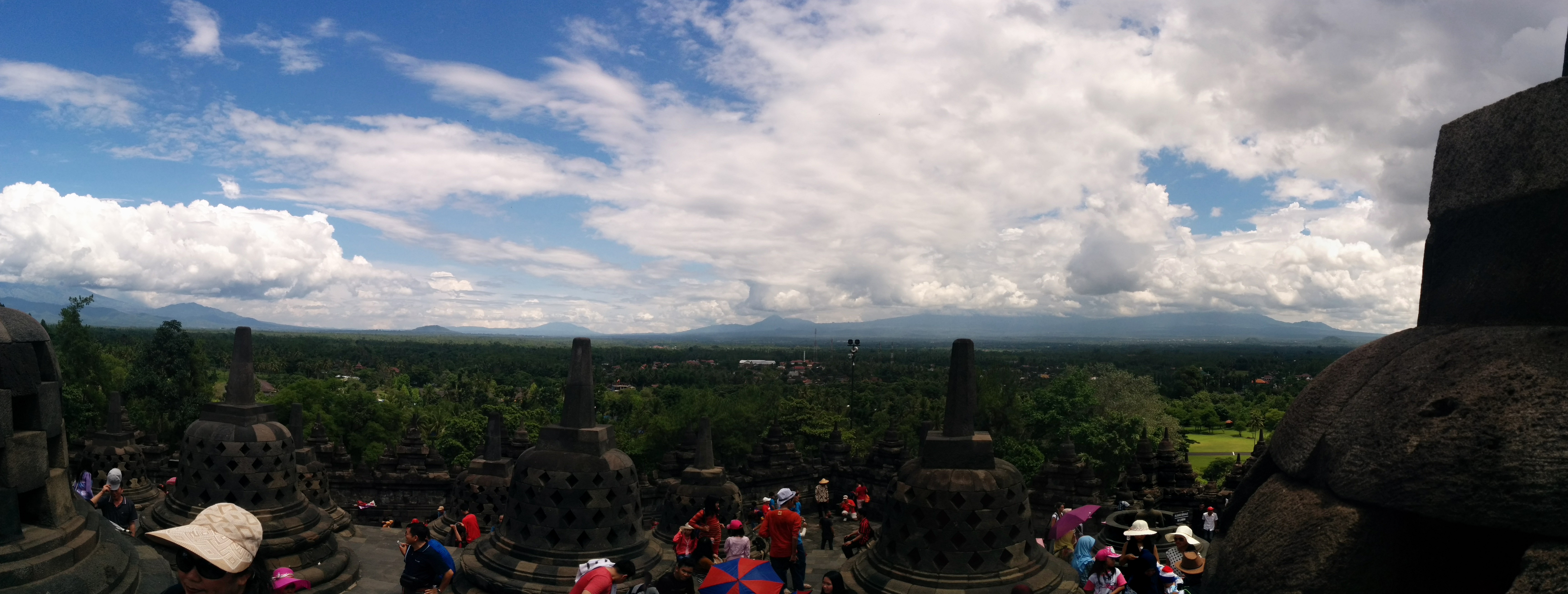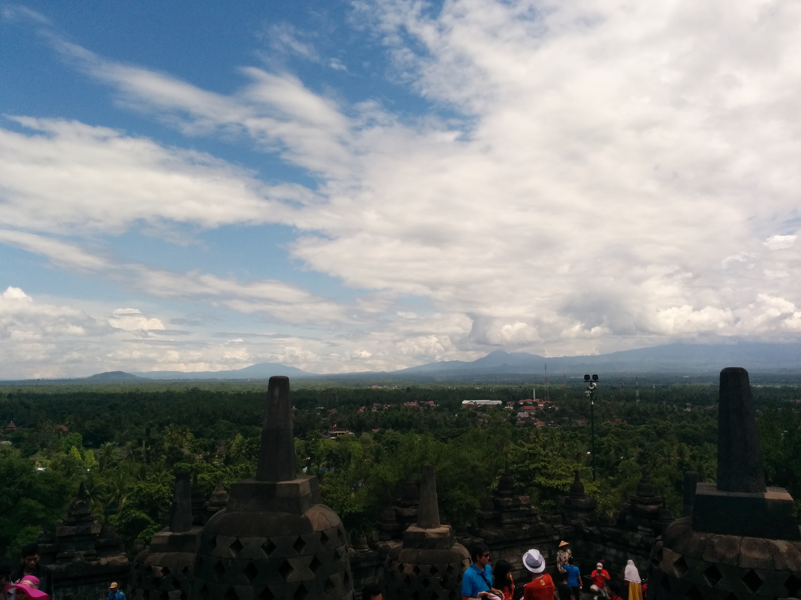 Setelah kurang lebih 30menit (termasuk beristirahat sebentar dan foto-foto), kami pun sampai di puncak candi. Pepohonan yang hijau, awan tebal yang berkumpul, langit biru, sinar matahari yang cerah, pokoknya kemegahan alam yang ada saat itu sungguh membuat hati senang.