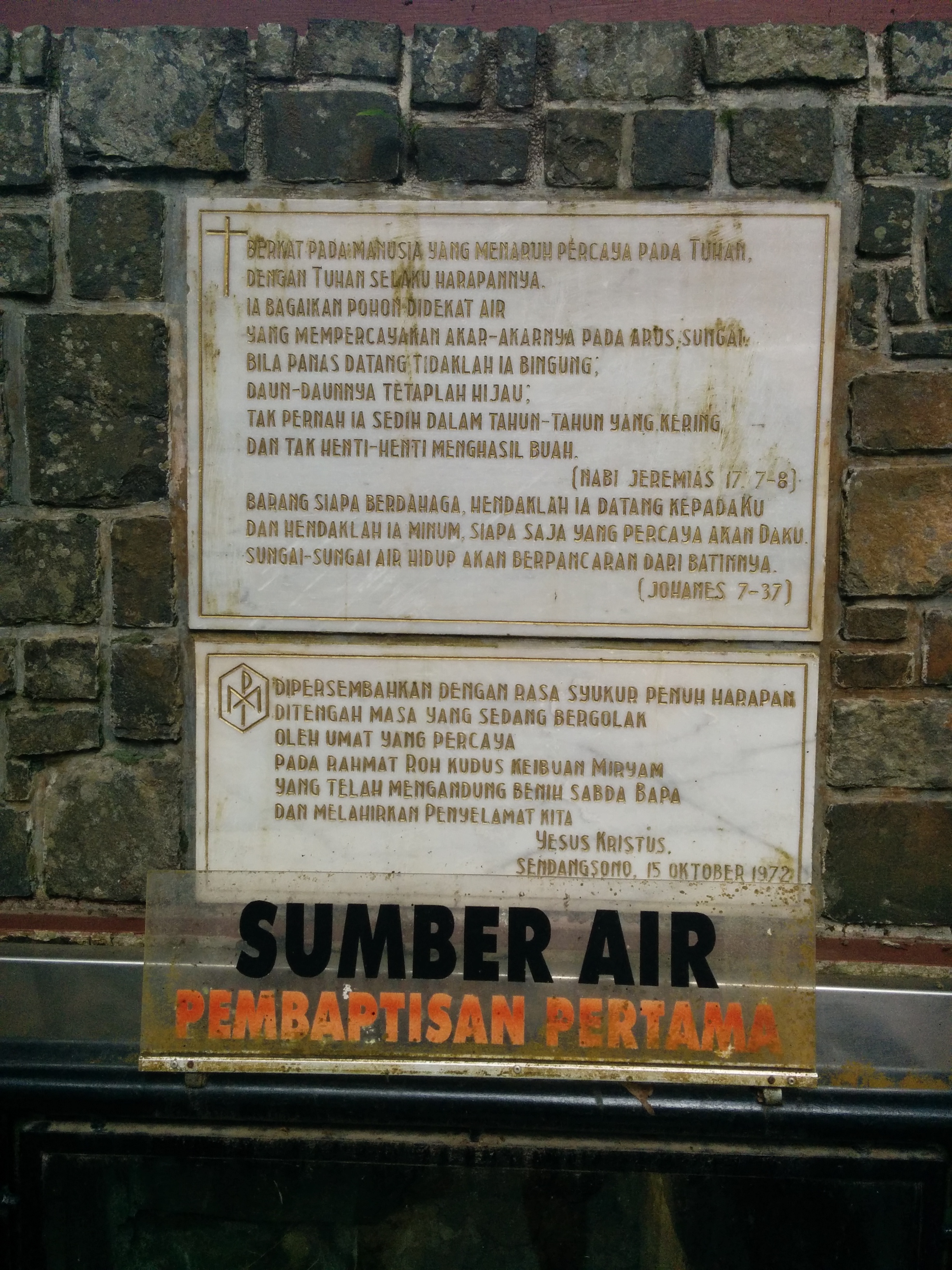 Kenyang dengan aneka jamur, kami melanjutkan perjalanan ke Goa Maria Sendangsono. Perjalanan ditempuh selama kurang lebih 90 menit, dan kami sampai sekitar jam 5 sore. Berfoto, berdoa, berbelanja, tak terasa waktu sudah menunjukkan jam 6 sore. Rencana untuk melihat matahari terbenam sudah tidak memungkinkan, kami pun melanjutkan perjalanan pulang sekalian mencari makan malam di daerah perkotaan Yogyakarta.