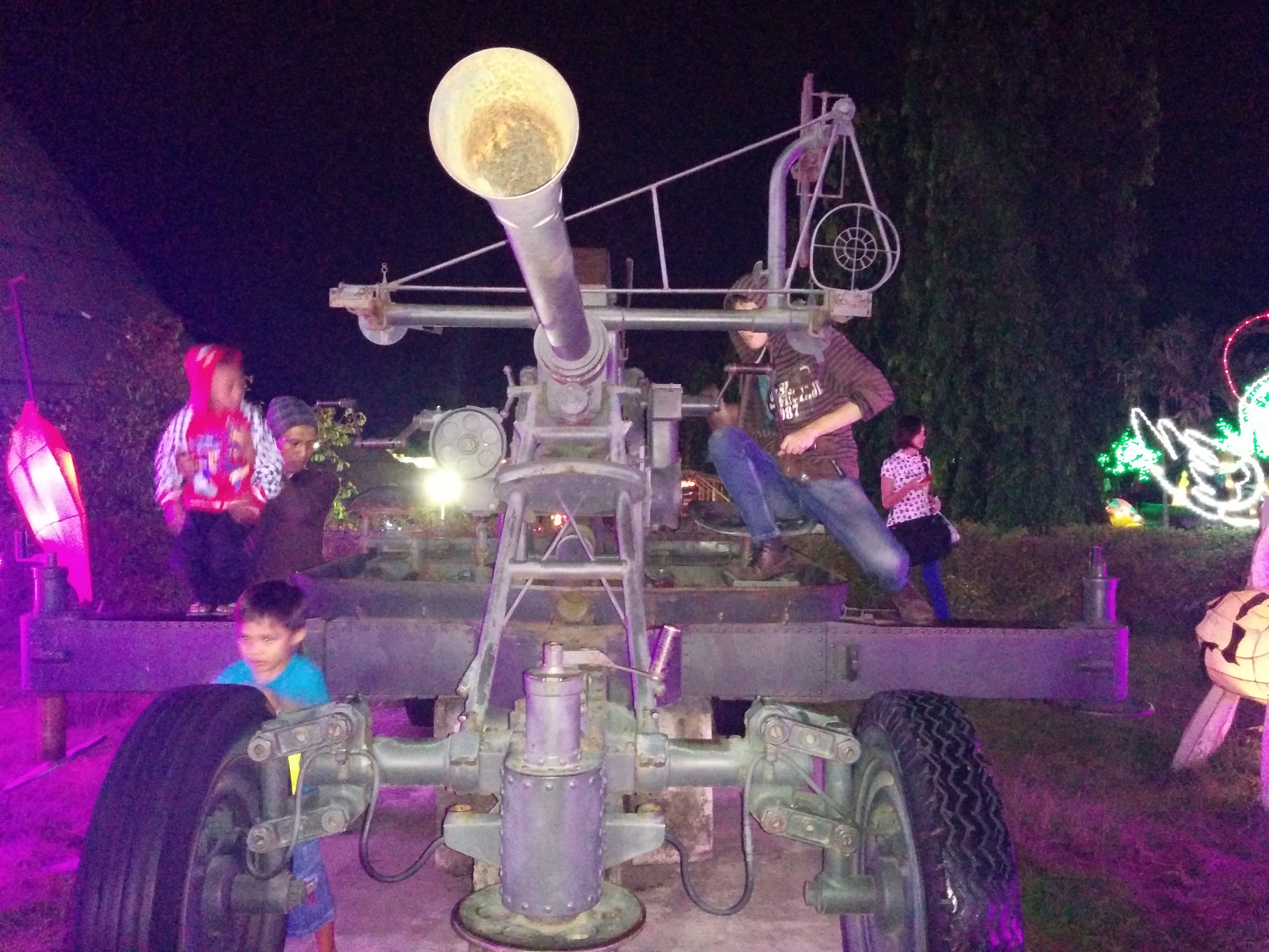 Perjalanan pulang cukup macet, kami sampai di Taman Pelangi kira-kira sudah pukul 8. Rencananya sekalian makan malam di sini, tapi setelah melihat-lihat sepertinya makanan yang ada kurang enak jadi kami hanya foto-foto di situ. Taman Pelangi ini semacam pasar malam yang diadakan di Monumen Jogja Kembali (MonJaLi), museum sejarah perjuangan kemerdekaan Republik Indonesia.