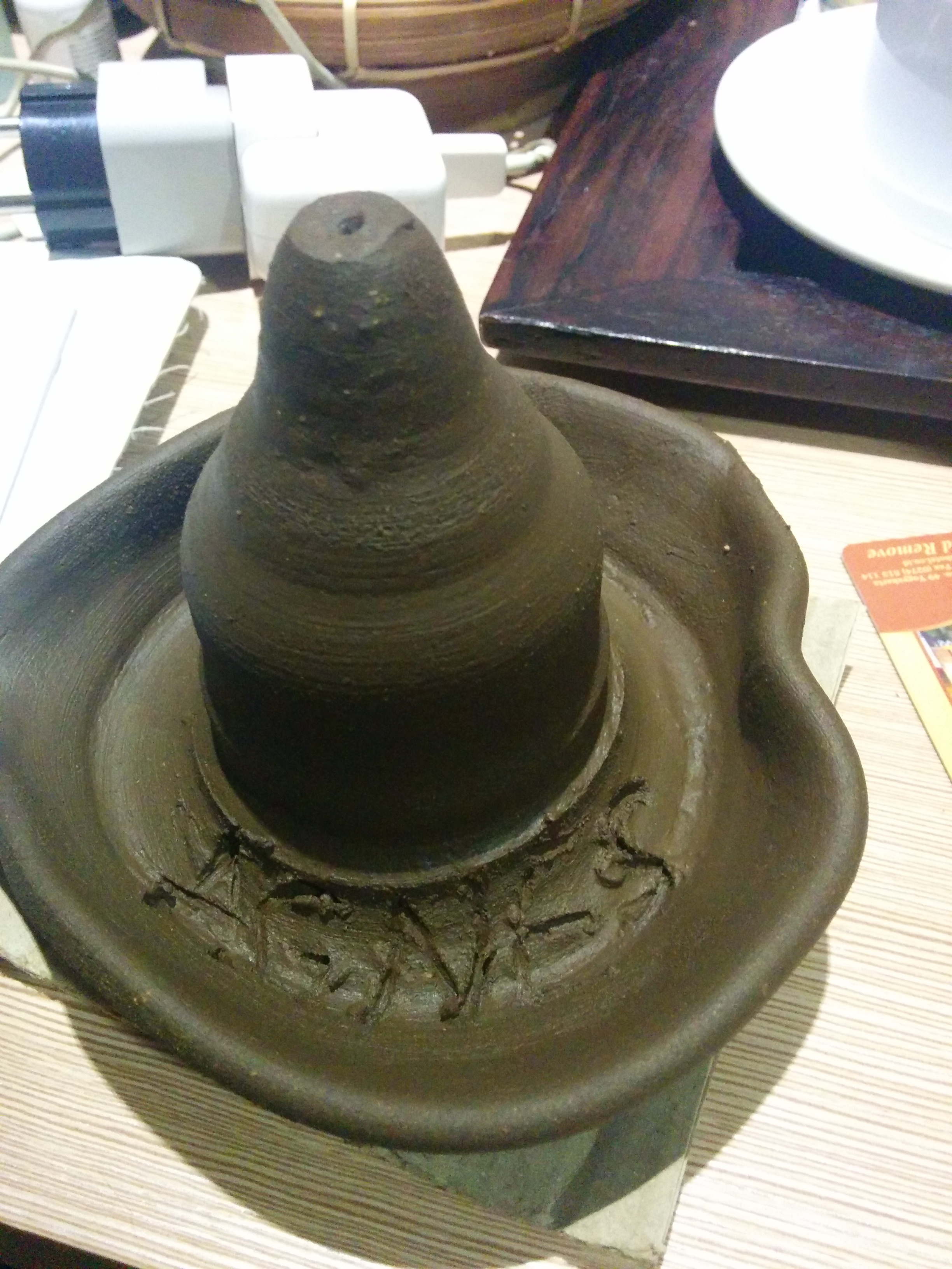 Setelah puas foto-foto dan terlihat sudah mulai mendung lagi, kami pun bergegas turun. Keluar dari candi, kami menyempatkan untuk mampir ke salah satu museum yang ada. Di sini ada batu-batu asli Candi Borobudur, patung Buddha emas (paling tidak warnanya emas), dan kursus kilat membentuk miniature stupa dari tanah liat cukup dengan membayar biaya kursus seharga 10.000 (sepuluh ribu) rupiah.