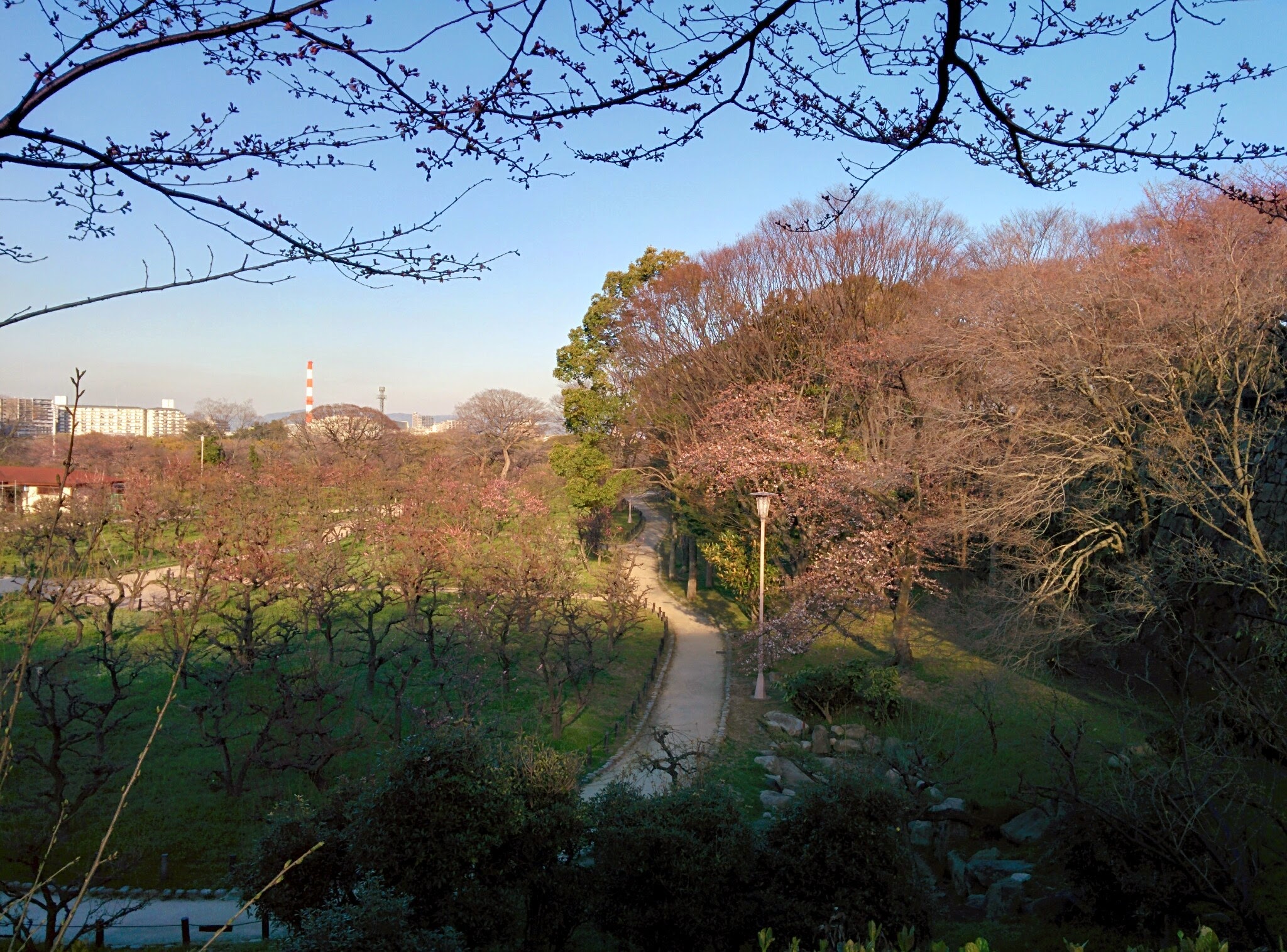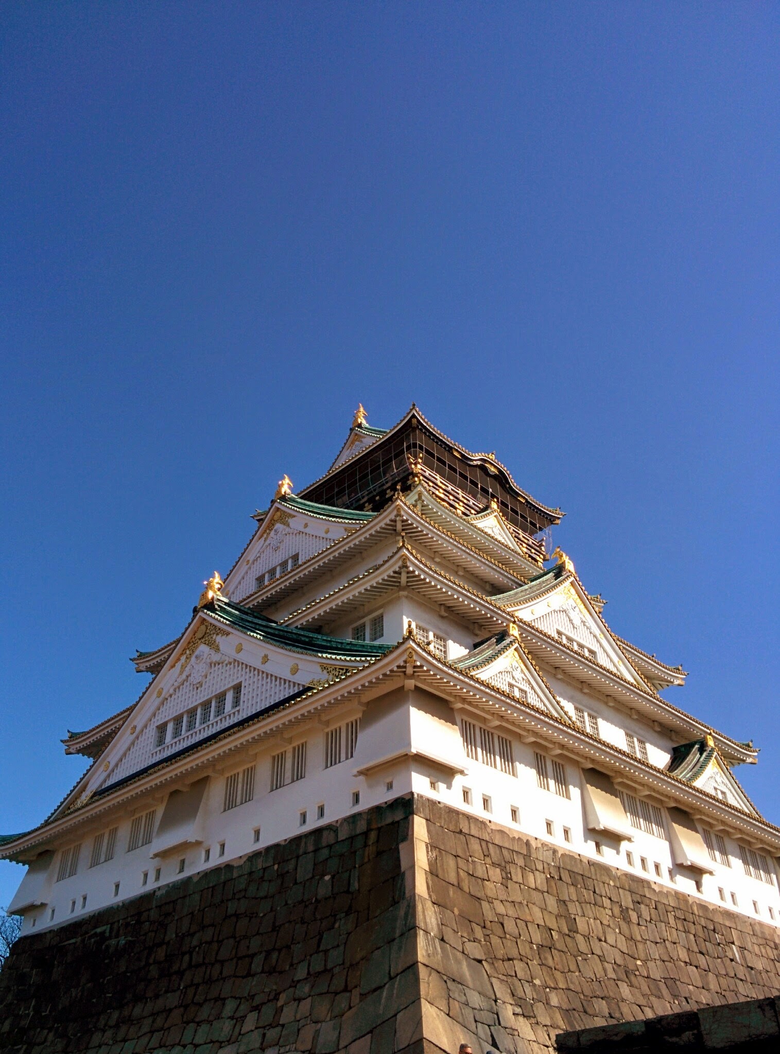 Selesai mandi, kami makan siang di ‘Yoshinoya’. Di sini ada pork, dan rasanya juga enak. Selesai makan kami melanjutkan tujuan pertama kami yaitu ke Osaka Castle. Cuaca lagi sangat-sangat bersahabat, cerah tapi anginnya dingin. Sambil jalan lewat taman “Osaka Castle” kita foto-foto, sebelum masuk castle foto-foto lagi.