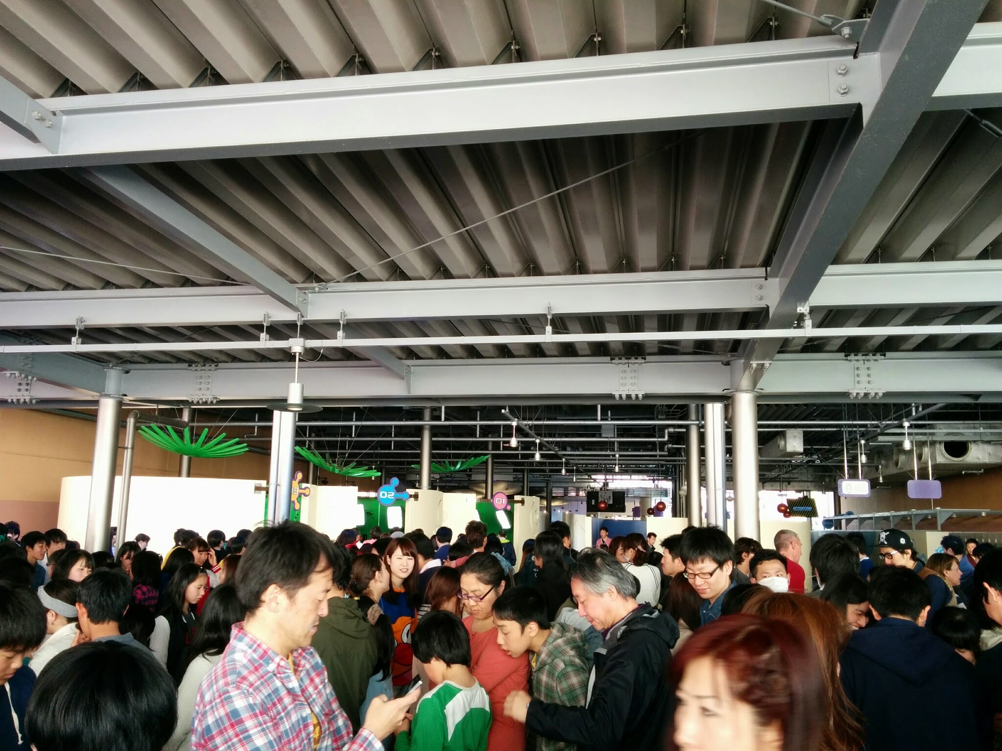 Keluar dari Terminator ternyata antrian Evangelion sudah sangat panjang, sampai ada yang bawa tikar dan bekal. Antri sampai bosan, kira-kira 2 jam lebih buat nonton Evangelion. Sensasinya mirip-mirip Terminator, kursinya berguncang sesuai cerita film tetapi kali ini ada cipratan air juga. Sehabis dari Evangelion kita nonton “Water Works”, kata Nick sama kayak yang di Singapore. Jadi kita duduk di paling belakang, karena baris-baris depan biasanya bakal kena siraman air.