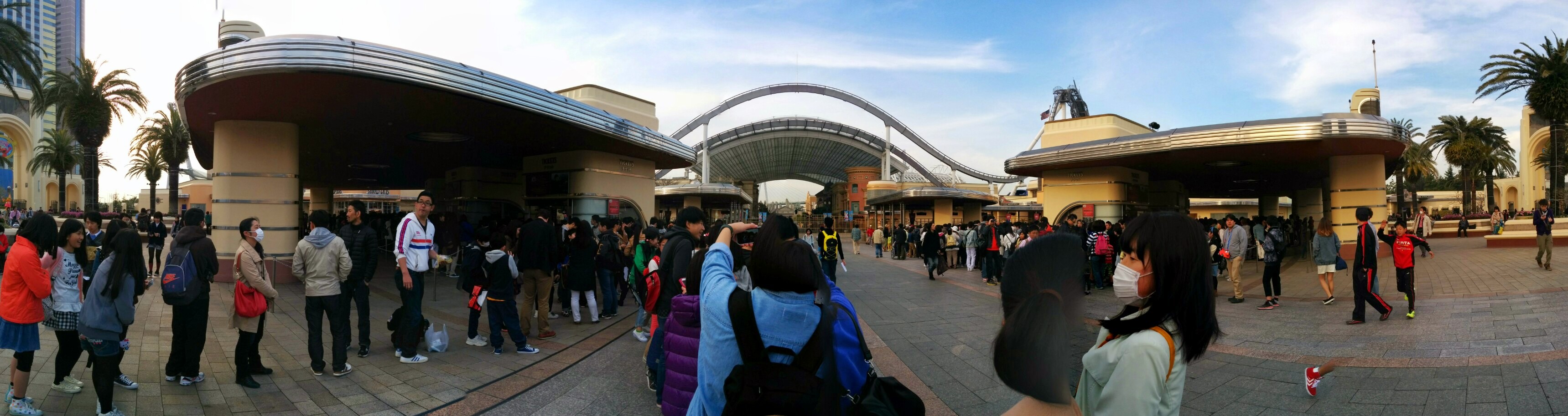Kami mendapat informasi dari hostel bahwa “Universal Studio” buka jam 8 pagi ketika weekend. Sekitar pukul setengah 8 kami sudah sampai di “Universal Studio”, langsung cari Express Pass ternyata sold out. Untuk tiket masuknya sendiri kami sudah beli di Panorama Tours seharga 6,980 (enam ribu sembilan ratus delapan puluh) yen. Kurang lebih pukul 8 gerbang dibuka, tapi ada antrian khusus yang bisa masuk duluan. Entah antrian Express Pass atau Annual Pass.
