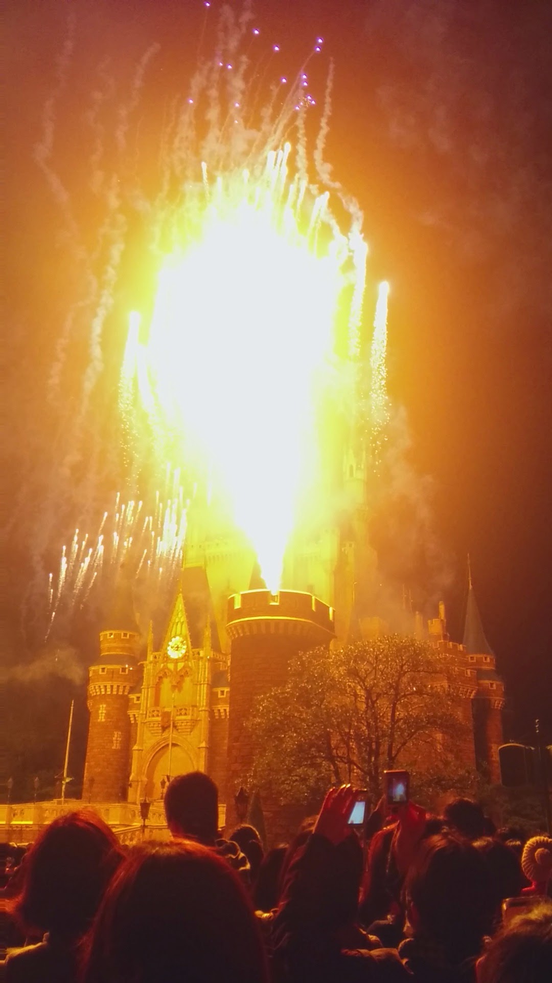Seusai parade kami langsung buru-buru ke kastil Disney untuk menyaksikan show utama “Happiness on High” pada pukul 20:30, keseluruhan peristiwa bahagia pada hari ini diekspresikan melalui kembang api yang spektakuler. Langsung dilanjutkan dengan show selanjutnya “Once Upon a Time”, dimana Cinderella Castle akan diubah menjadi “kisah hidup” dari berbagai cerita Disney terutama menikmati dunia “Frozen” dalam versi special pada show malam ini.