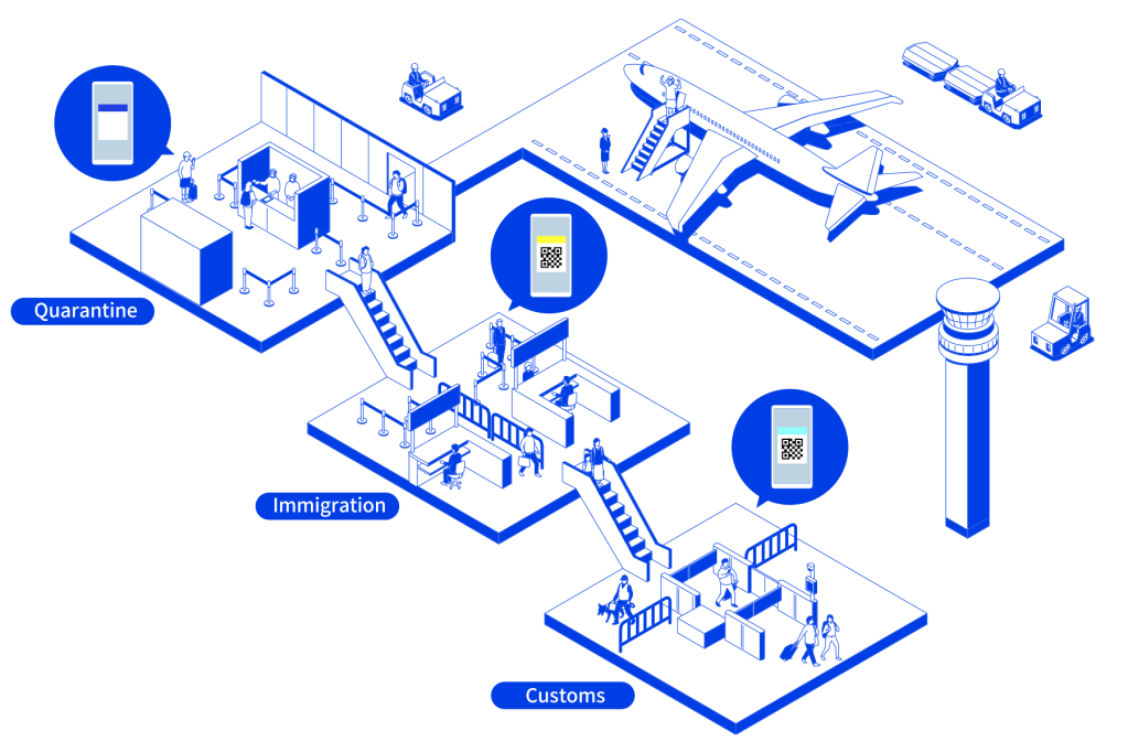 Kode QR Karantina akan berwarna hijau jika dokumen sudah lengkap (sertifikat vaksin dan/atau hasil tes COVID-19 negatif), kuning jika belum lengkap, dan merah jika tidak boleh masuk ke Jepang (hasil tes COVID-19 positif).