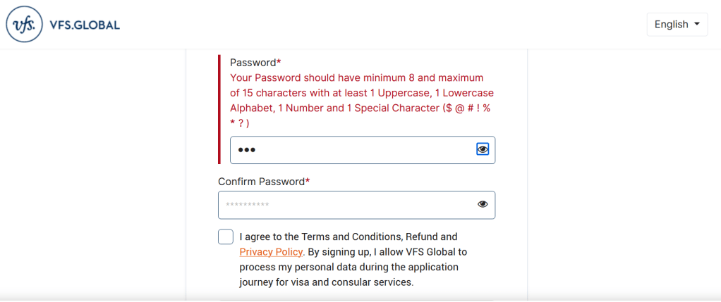 Untuk special character, dibatasi hanya boleh karakter tertentu: $, @, #, !, %, *, atau ?. Sedangkan password yang saya input menggunakan karakter lain, makanya error. Setelah mengikuti aturan yang berlaku, terbuatlah pengguna saya. Belum selesai prosesnya, lanjut mencari tanggal untuk temu janji membuat visa. Bulan Oktober sudah penuh semua, dapatnya di 8 November 2022 pukul 12:00 siang.