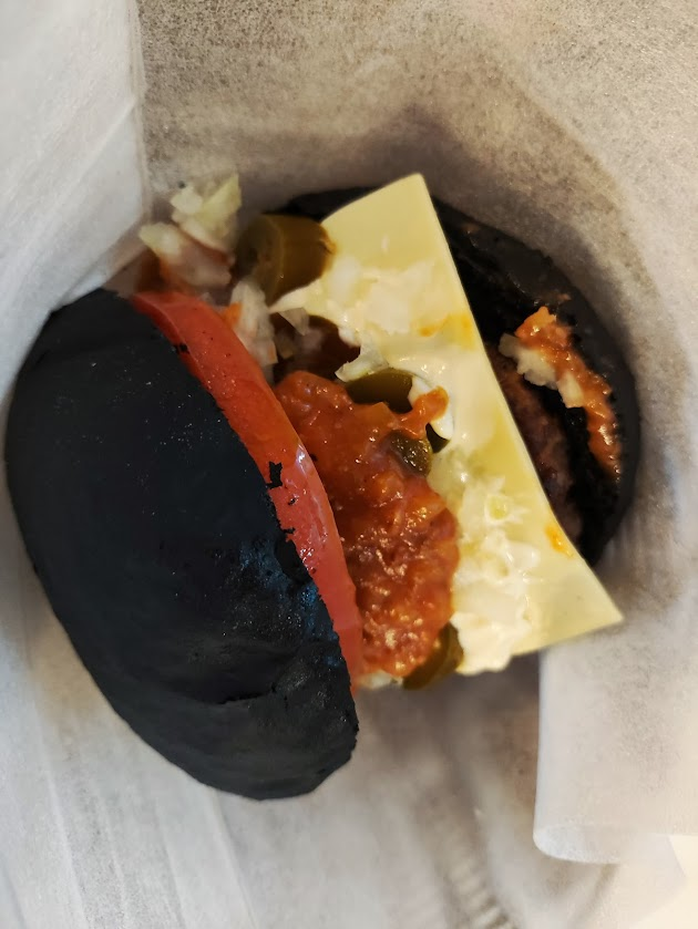 Spicy MOS Chicken Burger Charcoal (57,270 IDR + tax 10% = 63,000 IDR) – is the opposite of Fish Burger. If we want to eat something spicy, something bold, this is the one. Well, we don’t really taste the difference between ordinary bun and charcoal bun. The spicy sauce is spicier than we thought, but we still can handle it. There is also cheese and pickles, to make the burger taste more flavorful.