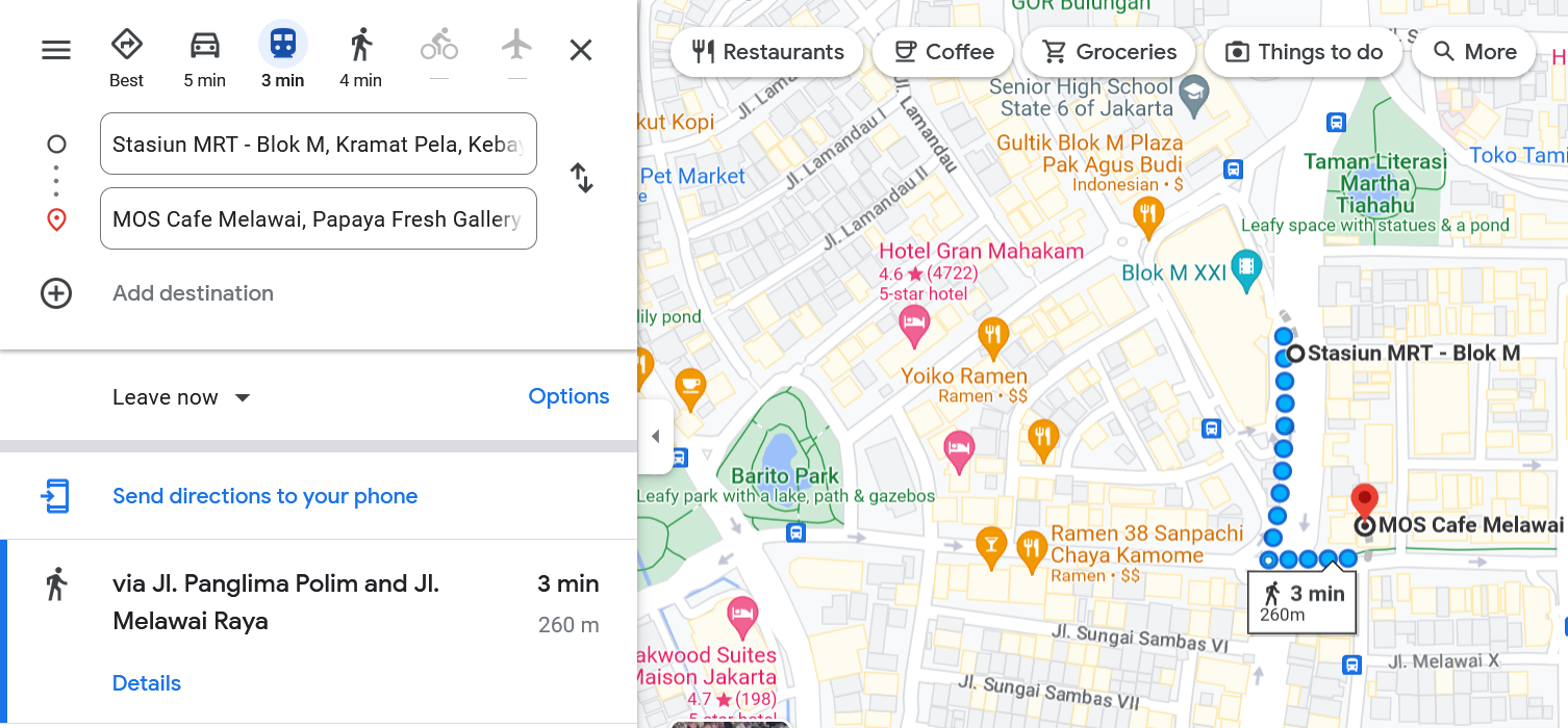 From Blok M – MRT Station, it’s just a short walk to MOS Cafe Melawai. Only around 3min or 260m, also we realized the pedestrian already wheelchair accessible. MOS Cafe Melawai located at the second floor of Papaya Fresh Gallery, sadly no elevator so we must take up the stairs. Around 11:30 AM we arrived at MOS Cafe Melawai, still not so many people because before the lunch time.