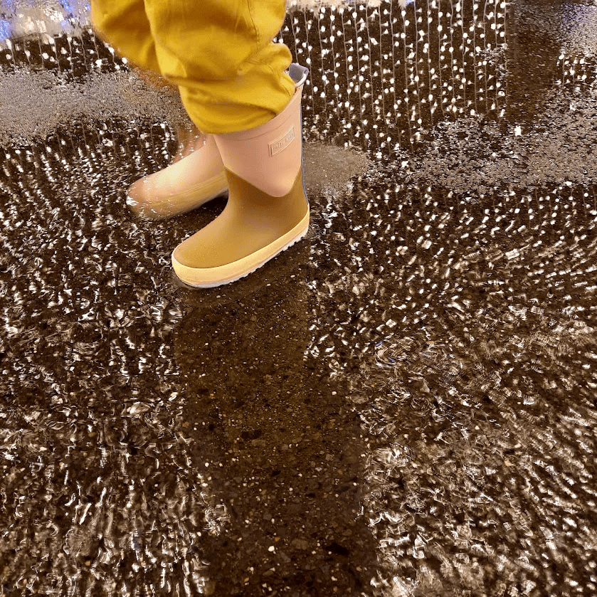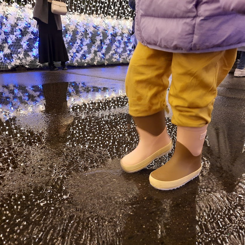 Akhirnya hujan tinggal rintik-rintik, kami pun bersiap-siap keluar. Ke toilet dulu mumpung masih di dalam ruangan, main gachapon dan mendapatkan hadiah Miffy. Lanjut ke Corridor of Light, masih menawan seperti dulu. Karena selain visual, juga disajikan lagu yang membuat suasana semakin romantis. Emma juga terlihat lebih senang bisa bermain di luar ruangan, sengaja mengenakan sepatu boots supaya bisa bermain genangan air hujan dan tidak masuk angin. Tapi memang lebih berat sih, dan suka lepas kalau dia tertidur di stroller.