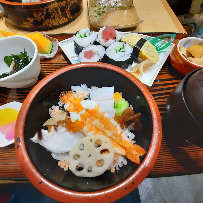 Setelah berbelanja buah untuk memenuhi nutrisi sehari-hari, kami lanjut mencari makan malam di dalam stasiun bagian basement. Ada ramen, sushi, dan pilihan jatuh kepada restoran sushi yang agak sepi. Saya kira kalau restoran sepi berarti tidak enak, untungnya sushi yang disajikan enak dan Emma pun suka. Dipinjamkan juga alat makan, kebetulan motif Miffy. Anak senang, orangtua tenang. Total makan malam 2ribuan yen, memang makan di stasiun relatif lebih murah mungkin karena buat pekerja?