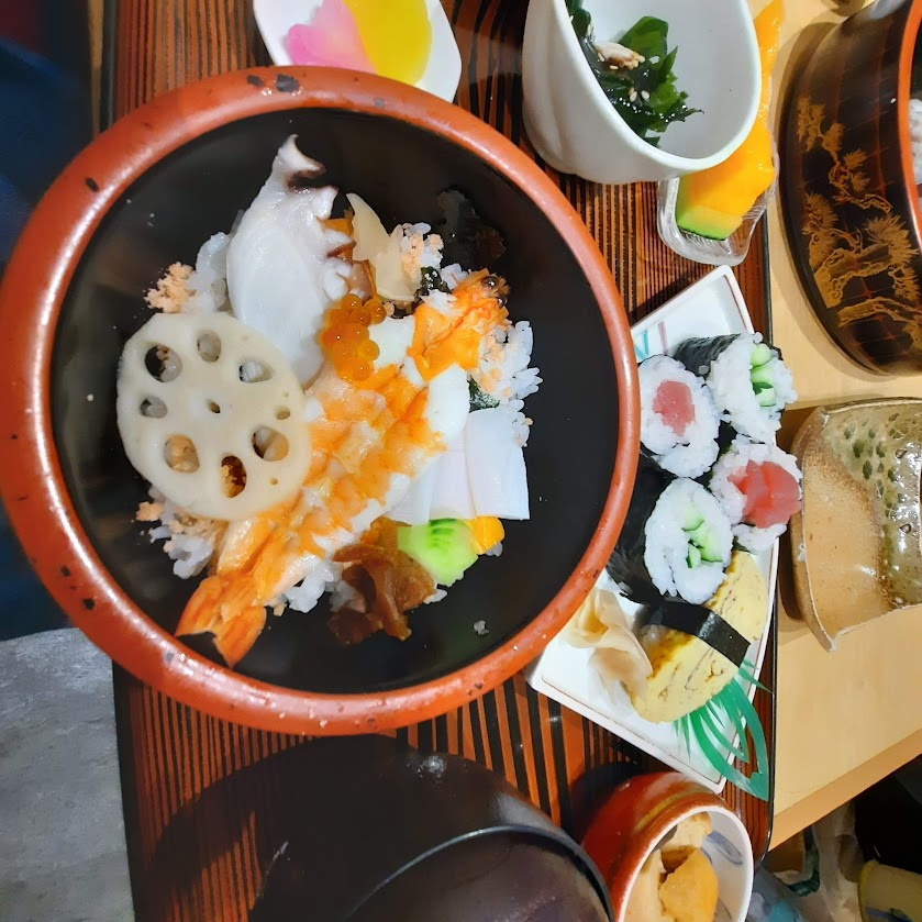 Mintalah kid’s amenities, Jepang sangat ramah anak! Mereka menyediakan slipper; sekantong berisi sikat gigi, pasta gigi, dan handuk. Pagi ini kebetulan hujan, jadi kami memutuskan untuk sarapan di hotel. Dengan harga 1,200 JPY per dewasa dan gratis untuk anak-anak, kami sudah bisa menikmati makananan yang menghangatkan tubuh di cuaca dingin ini. Selain roti, sosis, dan buah, yang saya suka di sini ada Chazuke: nasi dengan kondimen – biasanya rumput laut, ikan, ayam – dan disiram teh kaldu.