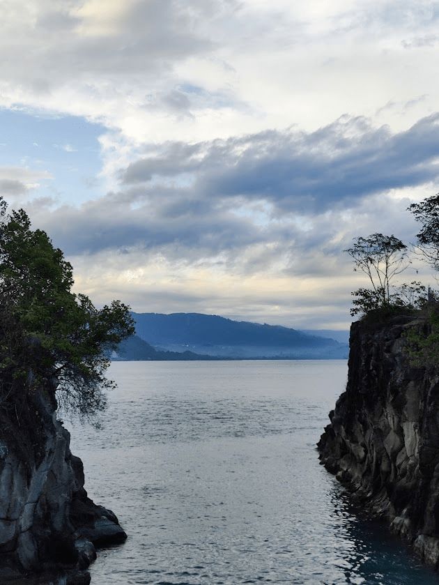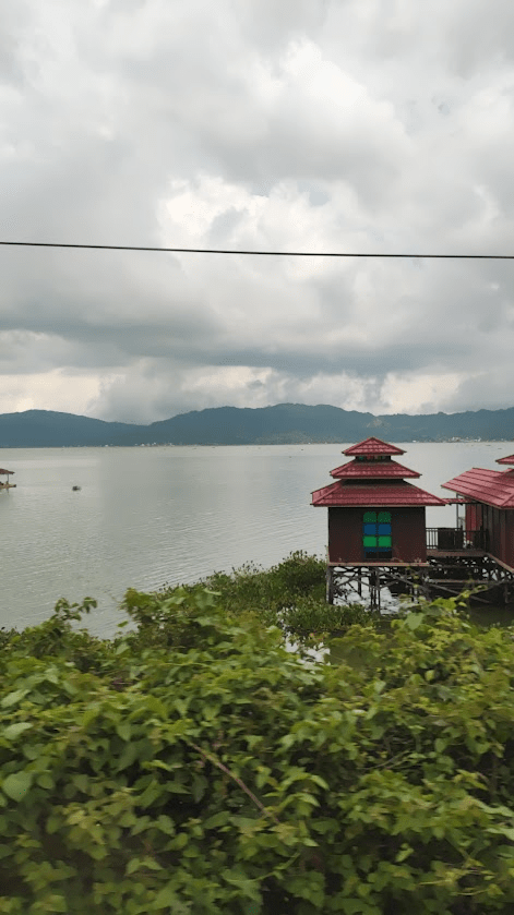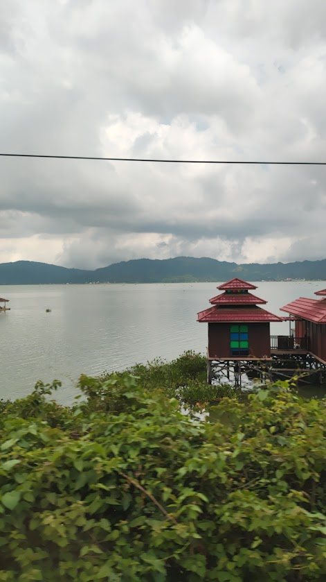 Approximately half way (red circle), we drove around a cliff and can see the ocean view. Very beautiful, yet scary. The road is winding and uphill, make it easier for us to became carsick. Some area raining, next area sunny. We continue to take a nap, wake up, snacking snake fruit, nap again. Really tiring journey, and finally we reached there.