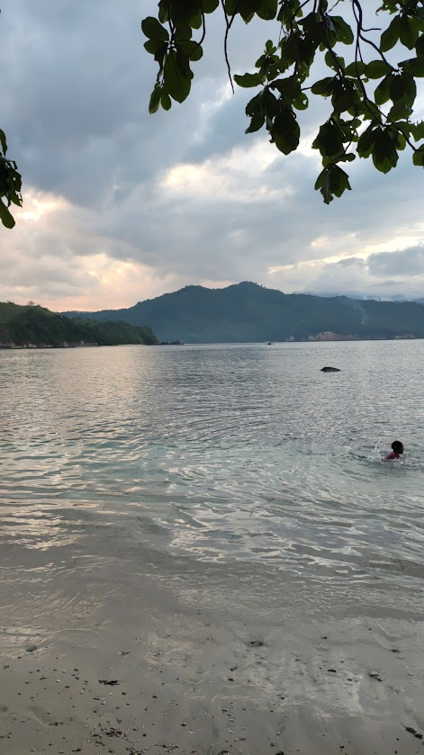 Luckily the sea was very calm, I didn’t get scared at all. Or maybe because the boat using a ‘balancer’ to balance the boat, my brother said. Anyway we enjoy the journey, and see many natural caves, majestic sky and clouds. When we arrived, beautiful white sand beach welcomed us. It’s already afternoon, many locals are swimming and resting in the shade while enjoying their coconuts.