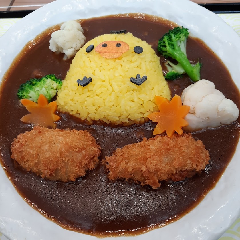 Saya mengantri di kafe, sedangkan Agnes & Emma ke toko. Saya melihat ada seorang bapak duduk di samping boneka Rilakkuma human size, beliau selfie sendiri, seru juga melihat kelakuan para otaku di sini. Antriannya lebih cepat dari perkiraan, kami pun masuk dan melihat menu yang kira-kira lucu difoto. Kualitas rasa mungkin diragukan, minimal untuk foto harus lucu.