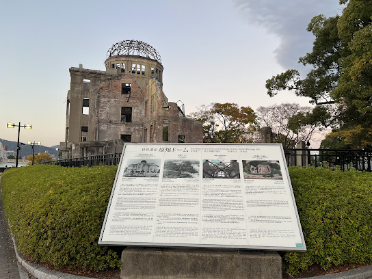 Turun dari kapal, langsung disambut A-Bomb Dome. Berfoto sebentar , kemudian melanjutkan cari mall untuk dipinjam toiletnya. Jadi A-Bomb Dome ini sebenarnya bangunan yang masih berdiri setelah kena bomb atom sehingga dilestarikan sampai sekarang, dan masuk ke dalam warisan budaya UNESCO sebagai bukti nyata sejarah Hiroshima yang unik.
